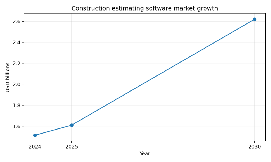 The estimating software market is also expanding fast, from USD 1.5142 billion in 2024 to USD 2.62 billion by 2030. The signal here is not subtle: pricing accuracy and faster takeoffs are becoming a core business need, not a niche service.